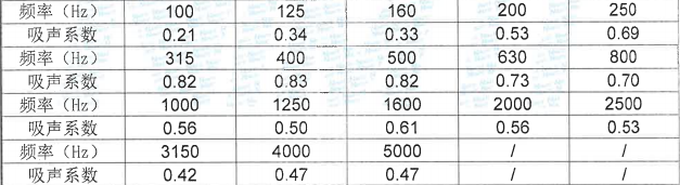 鋁條高效吸聲體吸音系數(shù)表