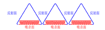 采用三面翻版結(jié)構(gòu),截面一般邊長(zhǎng)為350mm的等邊三角形,,其中兩面為反射面,一面為吸音面;三角形柱體沿中心軸線轉(zhuǎn)動(dòng),使墻面的吸音面積變化,以此達(dá)到控制空間內(nèi)的混響時(shí)間。